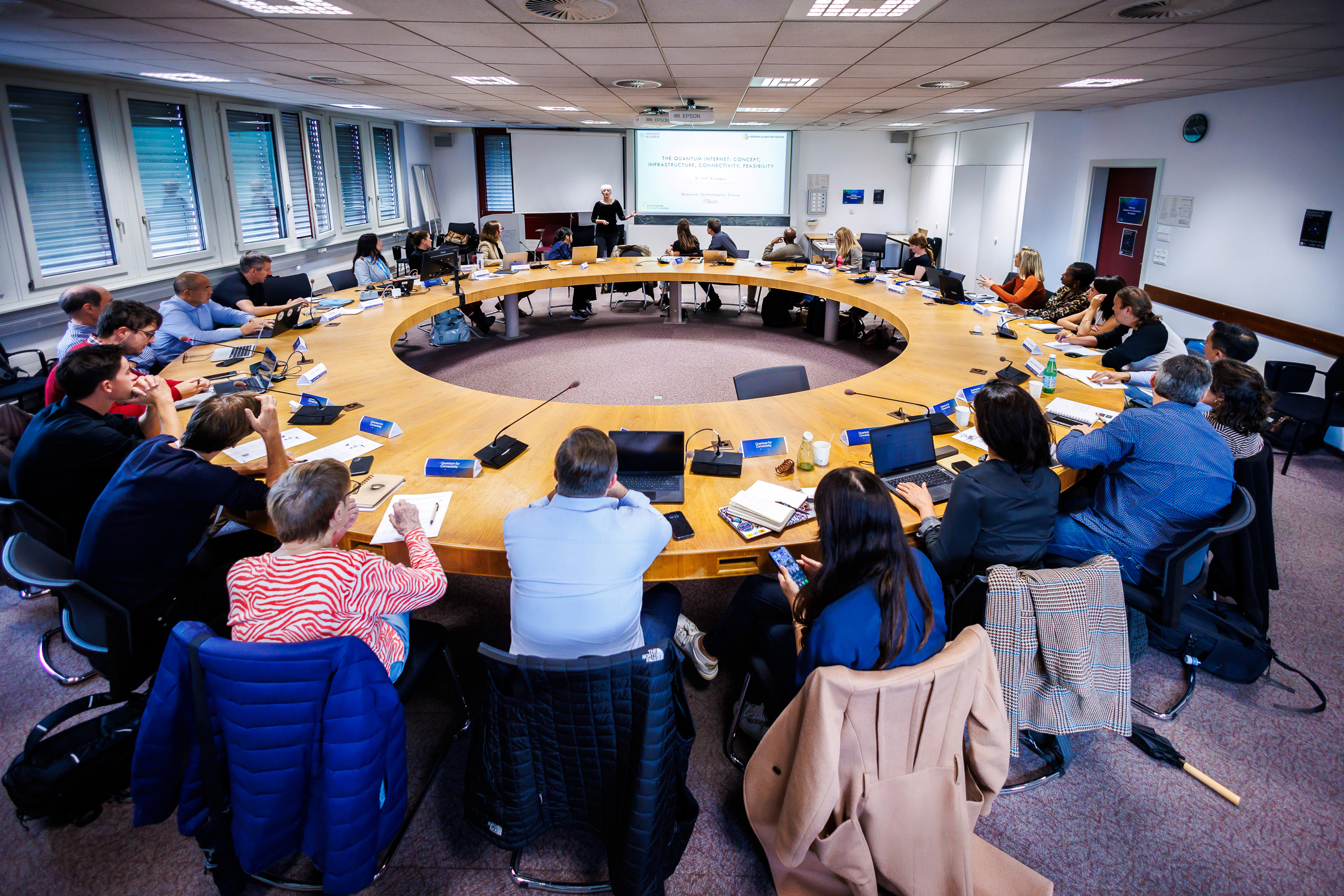 On Friday 18th October, CERN hosted the Quantum for Connectivity roundtable, co-organised by the Open Quantum Institute (OQI) and Giga, a UNICEF and International Telecommunications Union (ITU) initiative. The roundtable brought together over 30 experts from academia and industry  to discuss how quantum technology can be used to accelerate the UN Sustainable Development Goals (SDGs), through advancing education and connectivity in underserved geographies.