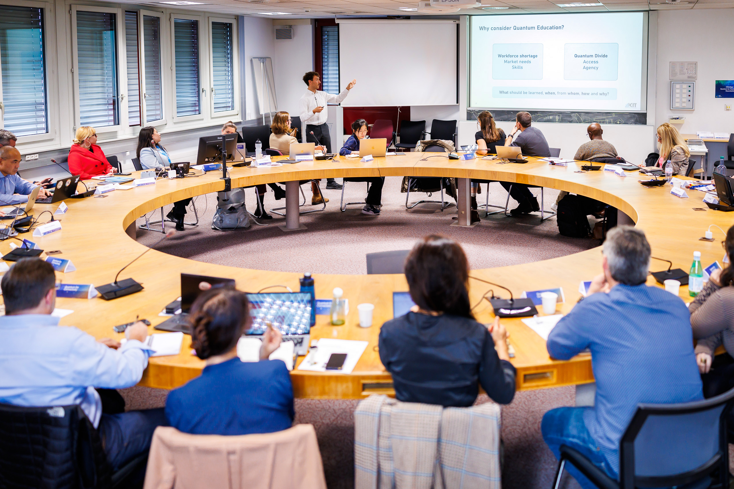 An integrated approach to anticipating quantum technology and internet connectivity was discussed, identifying education as a fundamental pillar. Suggestions during the roundtable included developing resources to provide equitable access to quantum education and working closely with educators and policymakers on a global scale. From these discussions, important questions were raised: how do we build capacity around quantum, and through which means can we provide access to it?